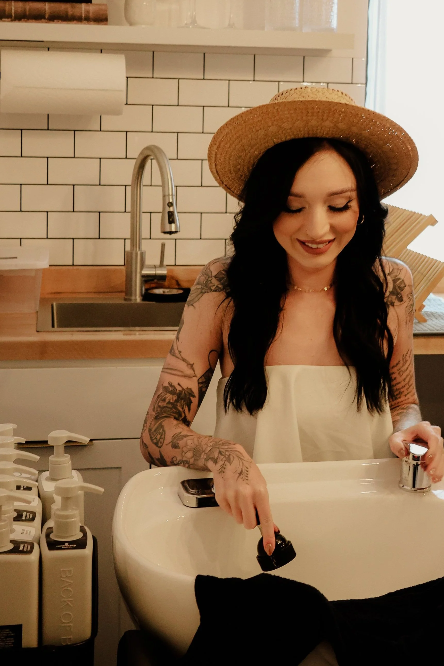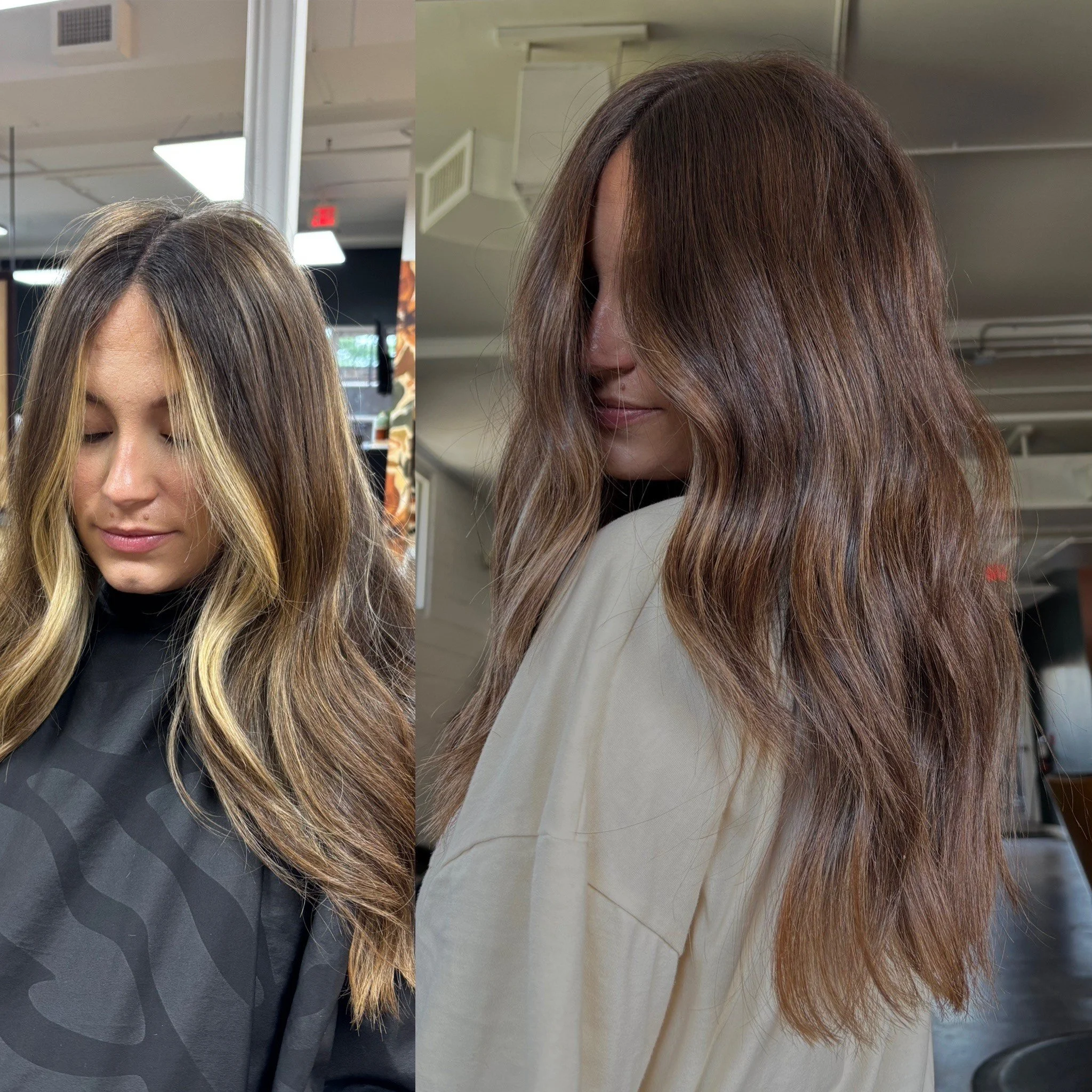 This all-inclusive, hourly session is designed for guests who dream of rich brunette, dimensional lowlights, vibrant reds, and cowboy coppers - crafted entirely around your vision. Every shade is thoughtfully chosen and expertly applied to compliment your features and lifestyle.